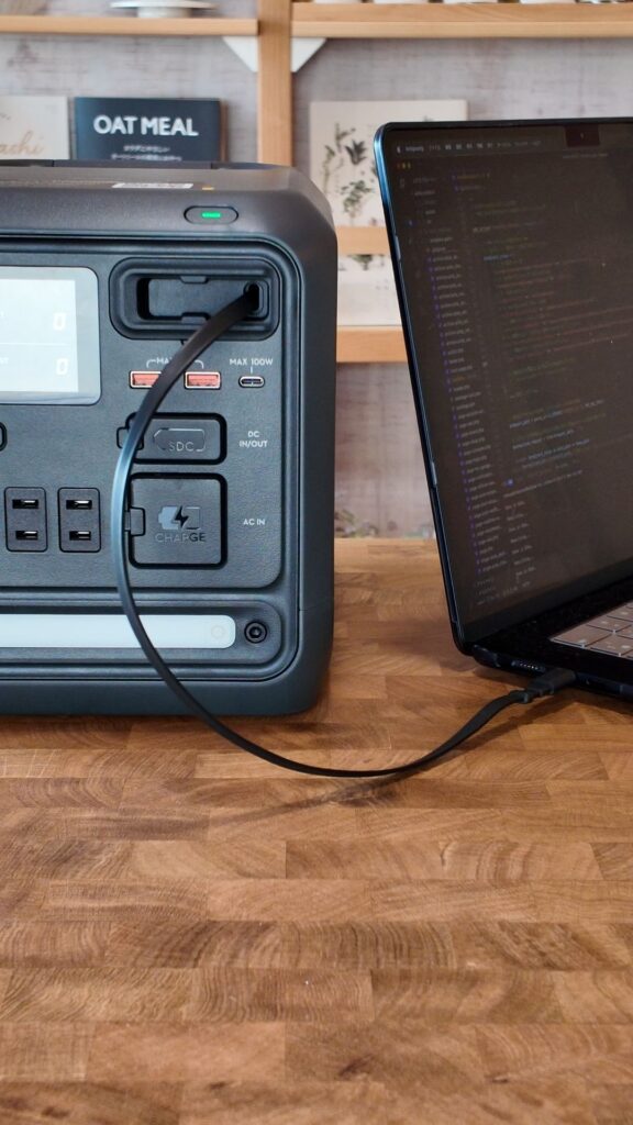 容量1000Wh帯の中で、かなりサイズが小さく、特徴的なUSB-Cの巻き取り式ケーブル100Wがとても使い勝手が良い。